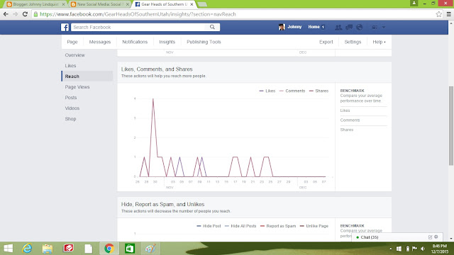 Overall as a Self Evaluation I think the page could have been better since I don't think its blossom'd into its full potential. There was definitely more I could have done and wanted to do throughout the semester, but due to getting a a part time job and living in my own apartment for the first time, instead of a dorm, and all while going to school full time made it hard to come up with better content and getting people involved to like the page. I can see my some people are able to make a profession out of running social media accounts because to be good at it, it definitely requires a lot of work. The page even peaked at 31 likes at one point but however it since has fallen back to 30.